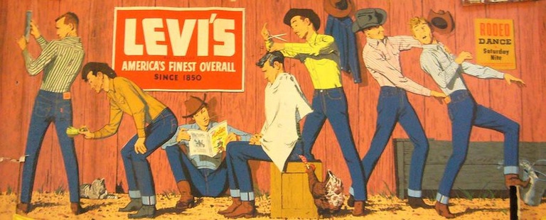 Это оригинальные плакаты используемые для рекламы джинсов Levi’s в 1950-х годах.